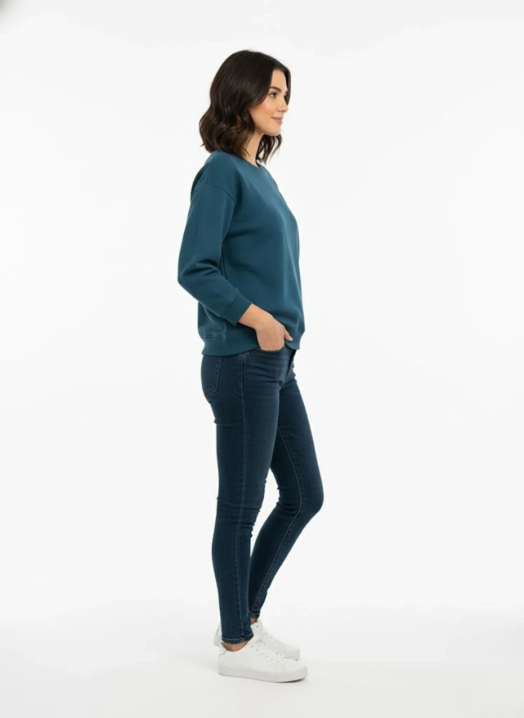 Remarks: DROP SHOULDER Gsm: 320 Color: Black Fabric: Terry Elevate your casual wardrobe with this contemporary drop-shoulder sweatshirt, crafted from premium reverse terry fabric. The striking black base is enhanced by visible contrast stitching and a distinctive reverse fabric panel, creating a modern silhouette with refined detail. Perfect for layering or standalone wear, this piece combines comfort with understated sophistication. Machine wash at 30°C on a gentle cycle, iron at 110°C, and avoid direct heat on any embellishments to maintain its pristine condition.