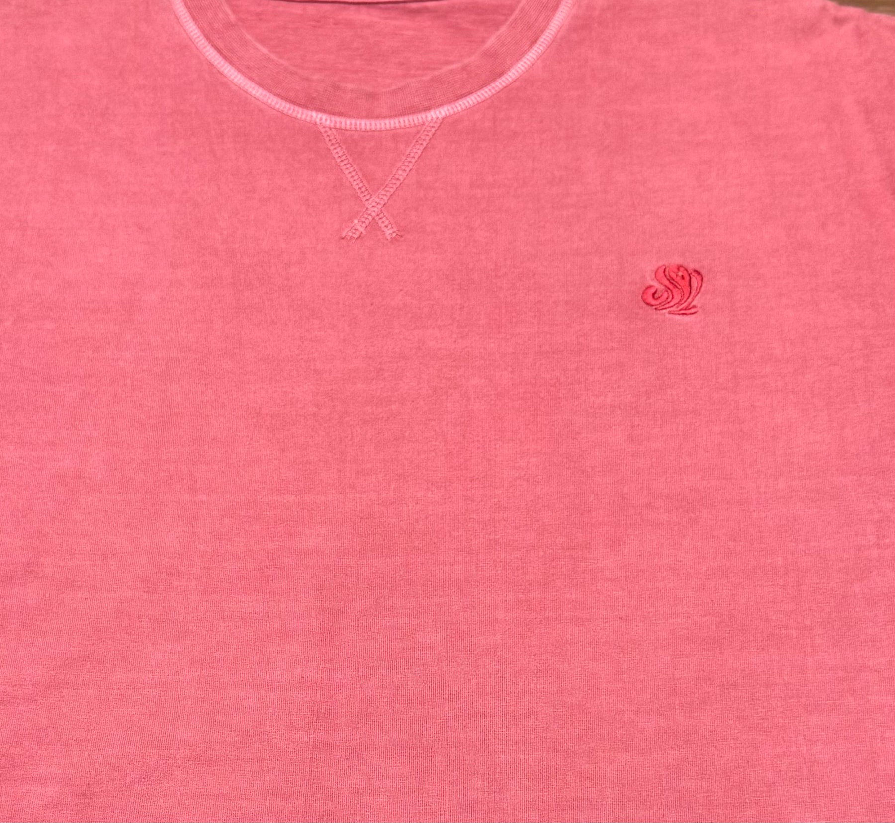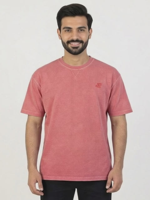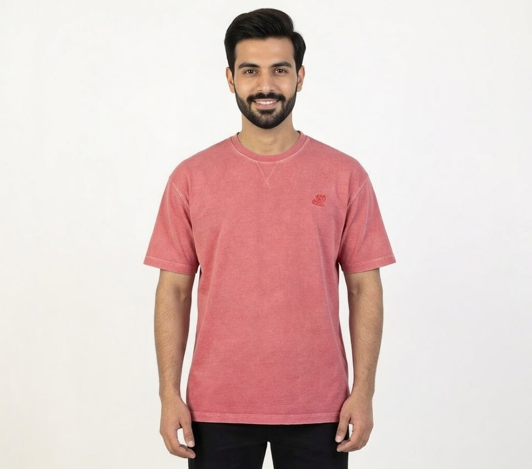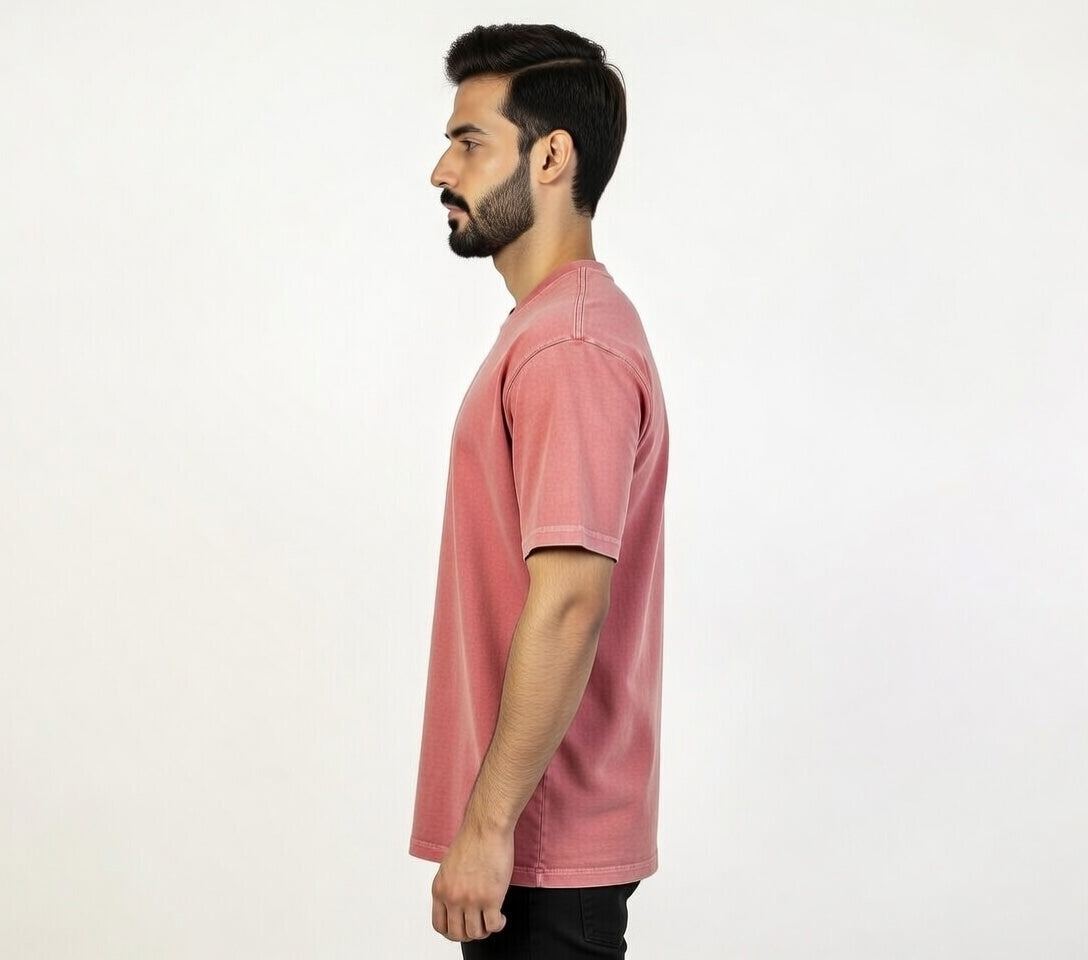 Vibrant coral pink color with garment-dyed wash for a soft, premium vintage appeal. PDF Jersey fabric (premium knit) — ultra-soft, highly breathable, durable, and skin-friendly.