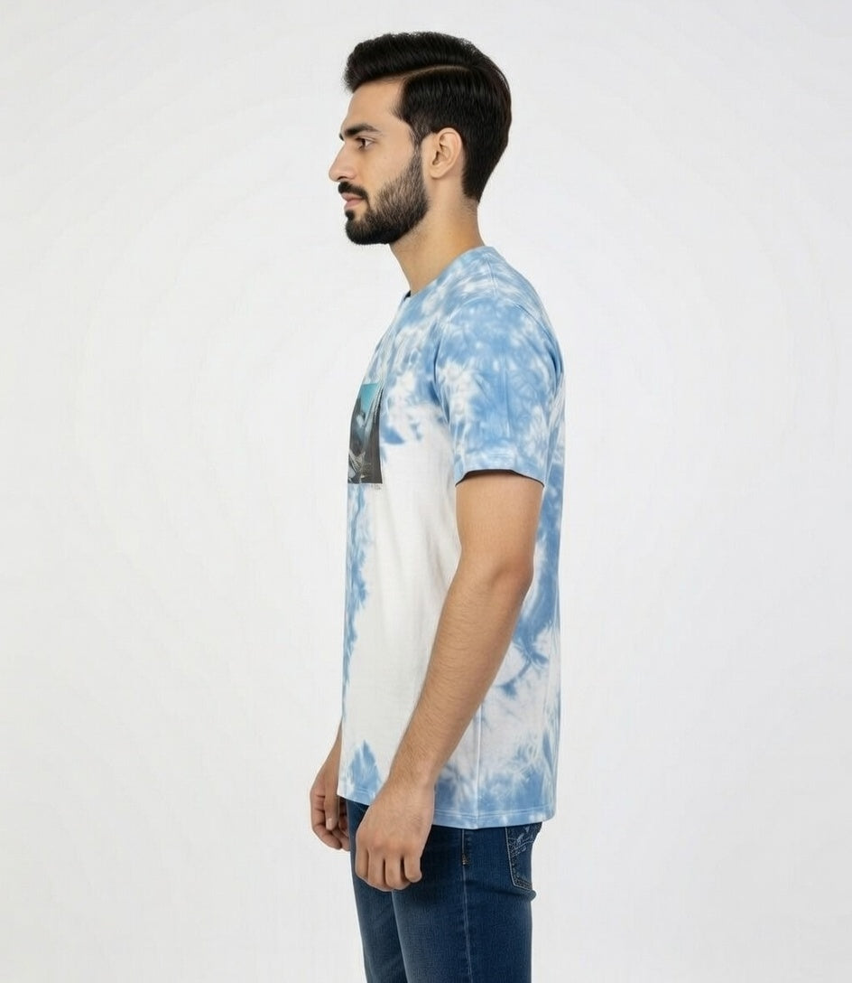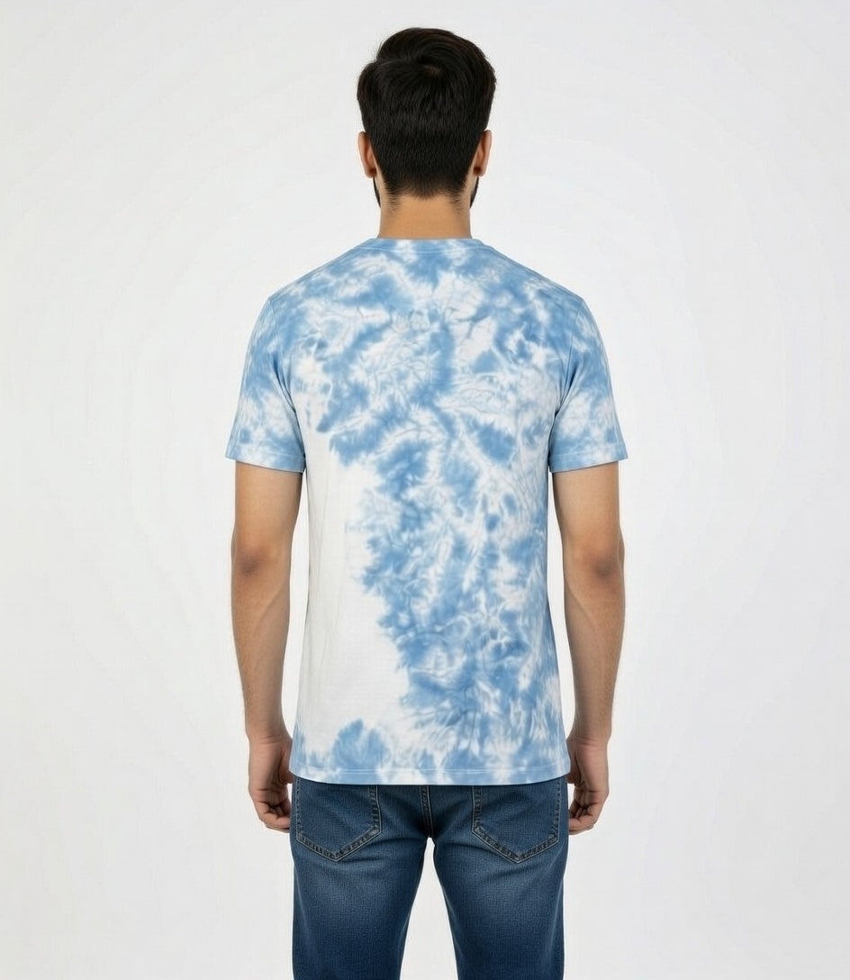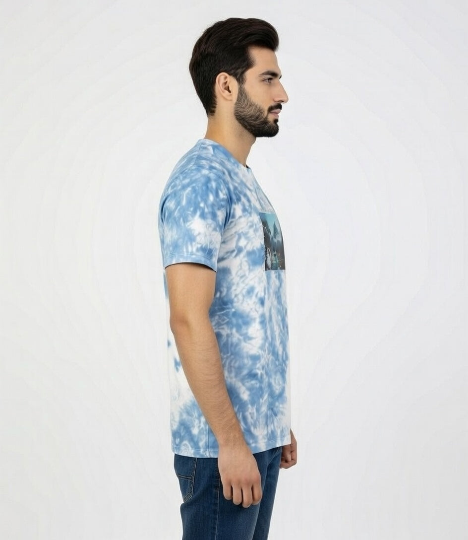 Celebrate Pakistan's breathtaking beauty with the Sweat92 Tie Dye Pakistan T-Shirt — featuring a stunning Skardu-inspired landscape of majestic peaks, serene rivers, and lush valleys on a soft blue-white tie-dye base. Slogan reads and of Rivers, Peaks, and Dreams – Pakistan Awaits – Beauty Beyond Your Imagination.