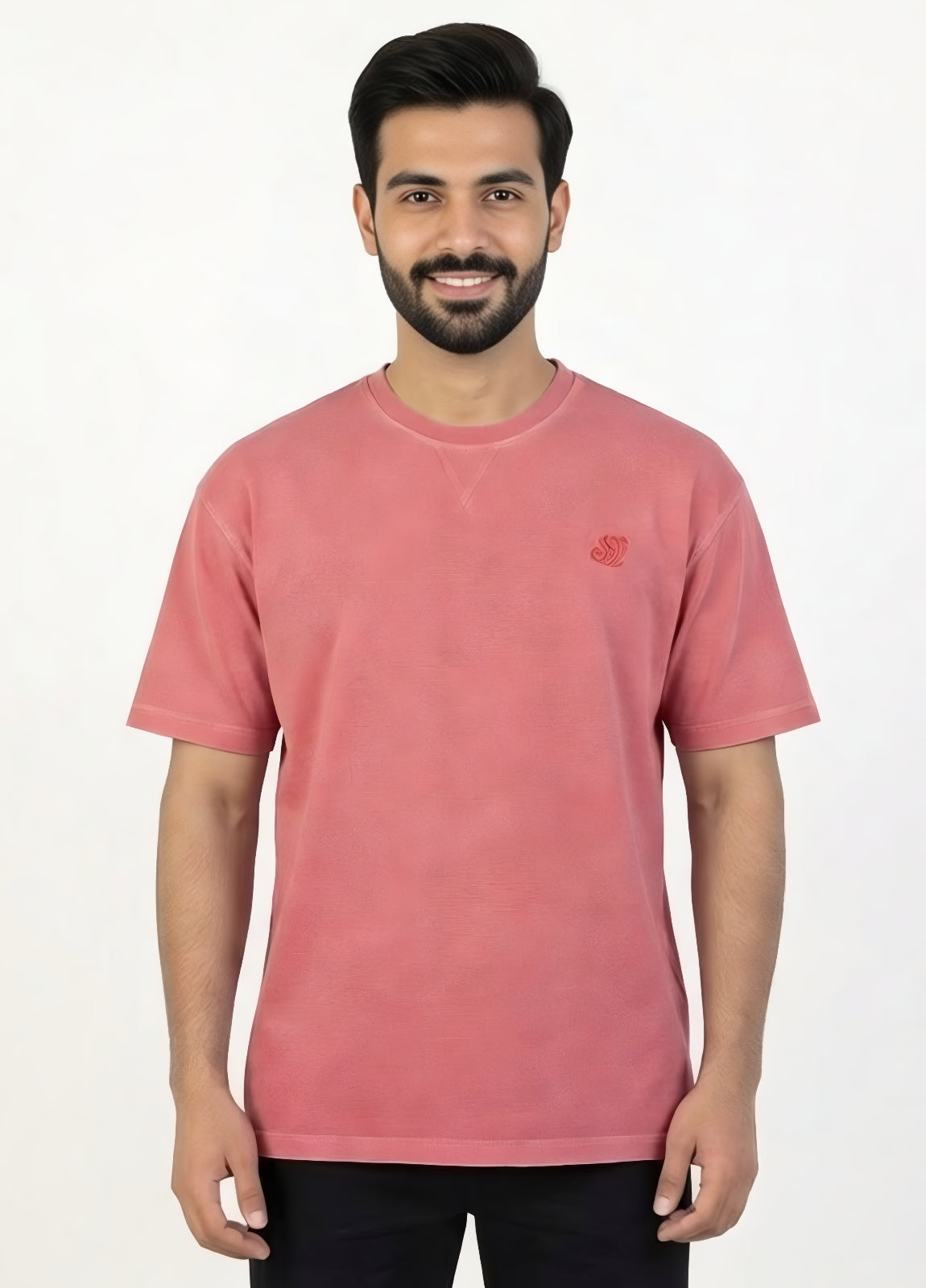 Stand out with vibrant style in the Sweat92 Men's Pink T-Shirt — a fresh coral pink crew neck tee made from soft PDF Jersey fabric, featuring subtle embroidered logo on chest. Premium knit delivers unbeatable breath ability, comfort, and stretch for everyday wear in Pakistan's heat.