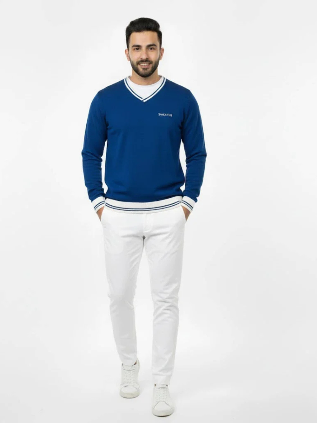 EMD BASIC SWEAT A refined staple for your everyday rotation, this regular-fit V-neck sweater showcases 280 GSM fleece construction paired with yarn-dyed rib detailing at the collar and cuffs for a polished appearance.