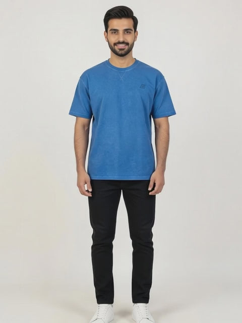 The Sweat92 Men's Blue T-Shirt is the perfect blend of casual sophistication and superior comfort. In a rich, washed navy-blue shade, this short-sleeve drop shoulder tee is crafted from high-quality PDF Jersey — a premium knit fabric that's soft, breathable, lightweight, and slightly stretchy for all-day ease and mobility.