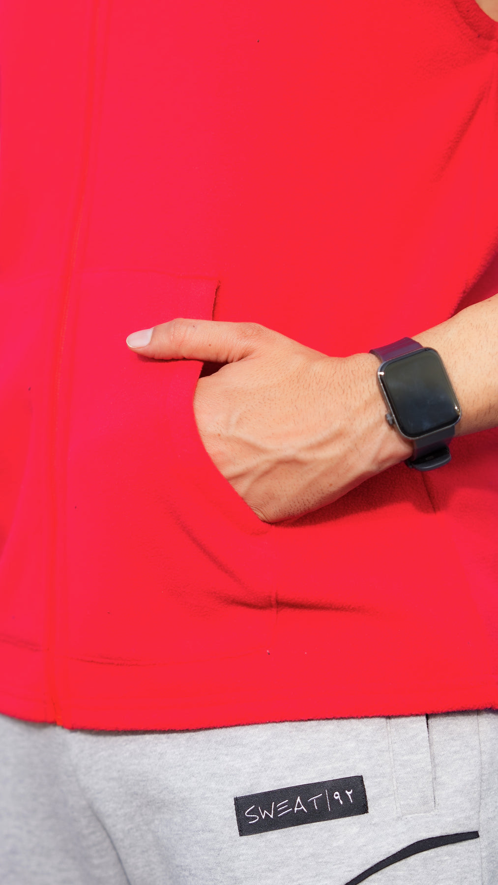 Elevate your layering game with this versatile polar fleece hooded vest. The regular fit design pairs seamlessly with any outfit, while the full-length zipper allows for easy adjustment throughout the day. Practical front pouch pockets keep your essentials within reach. Crafted from durable polar fleece in a striking red, this lightweight piece delivers warmth without bulk. Care instructions: machine wash at 30°C on gentle cycle, iron up to 110°C (avoid prints and embellishments), and air dry for longevity.