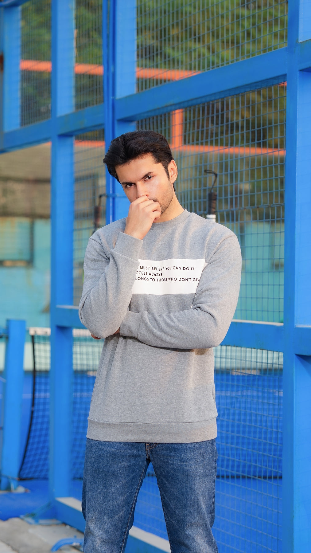 Elevate your casual wardrobe with this expertly crafted men's crewneck sweatshirt. The regular fit design combines a sophisticated gray base with a striking cream color-block panel across the chest, complemented by contrasting inner arm panels and eye-catching graphics. This versatile piece seamlessly transitions from gym sessions to everyday wear, offering both comfort and contemporary style. Care for your investment with gentle machine washing at 30°C, air drying, and careful ironing away from embellishments to maintain its pristine appearance for years to come.